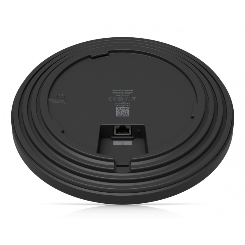 Ubiquiti U7 Pro XG. 2,4 GHz, 5 GHz, 6 GHz, Débit de transfert des données maximum: 5800 Mbit/s. Algorithme de sécurité soutenu: PPSK. LAN Ethernet : taux de transfert des données: 1000,2500,5000,10000 Mbit/s. Connexion Ethernet, supportant l'alimentation via ce port (PoE). Couleur du produit: Noir. Consommation (max): 22 W