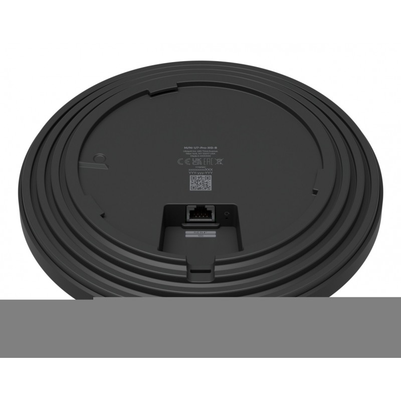 Ubiquiti U7 Pro XG. 2,4 GHz, 5 GHz, 6 GHz, Débit de transfert des données maximum: 5800 Mbit/s. Algorithme de sécurité soutenu: PPSK. LAN Ethernet : taux de transfert des données: 1000,2500,5000,10000 Mbit/s. Connexion Ethernet, supportant l'alimentation via ce port (PoE). Couleur du produit: Noir. Consommation (max): 22 W