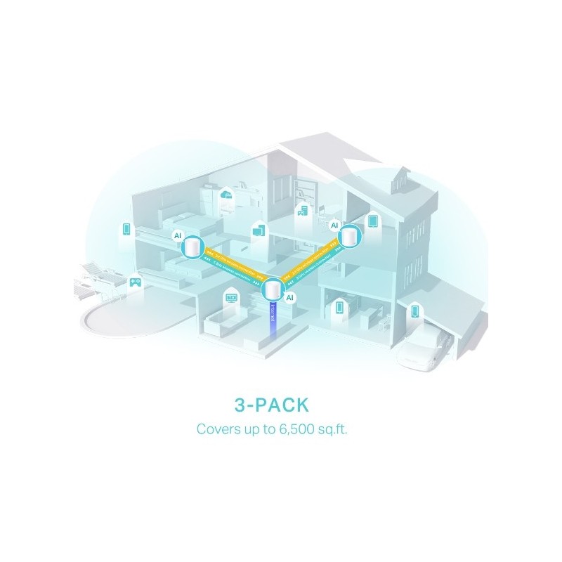 • TP-LINK Deco X50 3-pack, Blanc, Interne, CE: 20 dBm 2.4 GHz 23 dBm 5 GHz FCC: 30 dBm 2.4 GHz 30 dBm 5 GHz, Bi-bande 2,4 GHz 5 GHz, Wi-Fi 6 802.11ax, 802.11a, 802.11b, 802.11g, Wi-Fi 4 802.11n, Wi-Fi 5 802.11ac, Wi-Fi 6 802.11ax