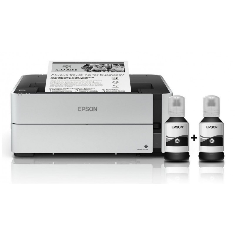 Epson EcoTank Imprimante monochrome ET-M1170. Cycle de service (Maximum): 20000 pages par mois. Résolution maximale: 1200 x 2400 DPI. Taille de papier de série A ISO maximum: A4. Vitesse d'impression (noir, qualité normale, A4/US Letter): 39 ppm. Impression recto-verso. Wifi. Couleur du produit: Gris