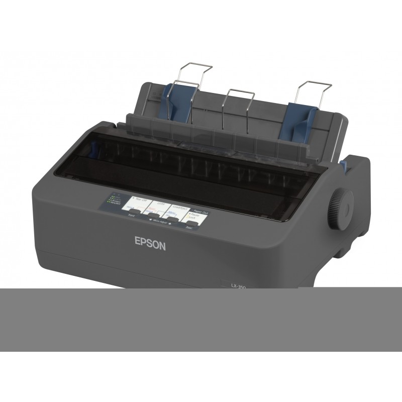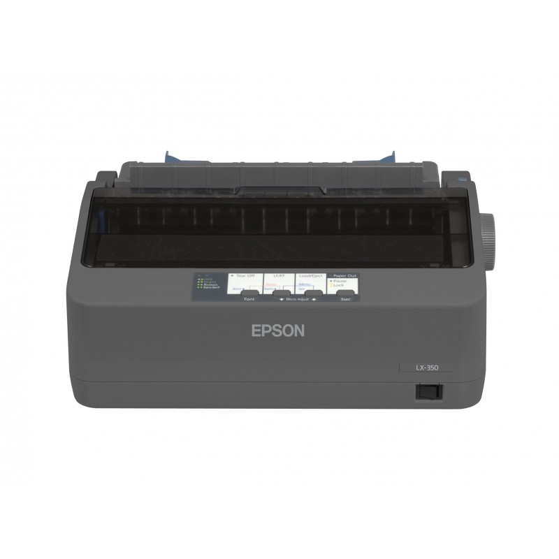 Epson LX-350. Vitesse maximale d'impression: 357 caractères par seconde, Résolution maximale: 240 x 144 DPI, Vitesse d'impression maximale (qualité brouillon): 312 caractères par seconde. Format d’impression maximale: A4 (210 x 297 mm), Alimentation papier: Manuel, Type de support du bac papier: Enveloppes, Étiquettes, Papier ordinaire, Rouleau. Taille du buffer: 128 Ko, Niveau de pression sonore (impression): 53 dB, Langues de la description de page: Epson ESC/P2. Interfaces standards: Parallèle, USB 2.0. Tête d'impression: 9 broches, Direction d'impression: Bidirectionnel, Durée de vie de la tête d'impression: 400 million de caractères