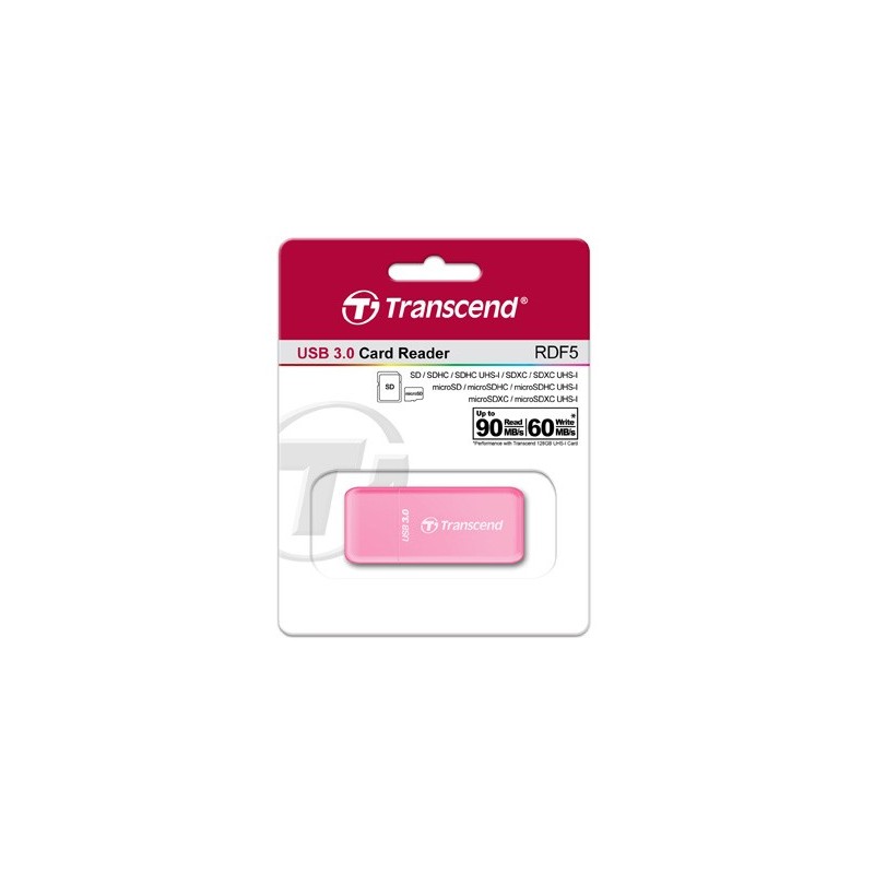 Transcend RDF5. Cartes mémoire compatibles: MicroSDHC, MicroSDXC, SDHC, SDXC, Couleur du produit: Rose, Certification: CE/FCC/BSMI/KC/RCM/EAC. Interface: USB 3.2 Gen 1 (3.1 Gen 1) Type-A. Type de source d'alimentation: USB, Tension d'entrée: 5 V. Largeur: 24 mm, Profondeur: 8,9 mm, Hauteur: 56 mm. Prise en charge du système d'exploitation Windows: Windows 7 Enterprise, Windows 7 Enterprise x64, Windows 7 Home Basic, Windows 7 Home Basic x64,..., Prise en charge du système d'exploitation Mac: Mac OS X 10.2 Jaguar, Systèmes d'exploitation compatibles: Microsoft Windows 7 Microsoft Windows 8 Microsoft Windows 10 Mac OS X 10.2.8 or later Linux Kernel...