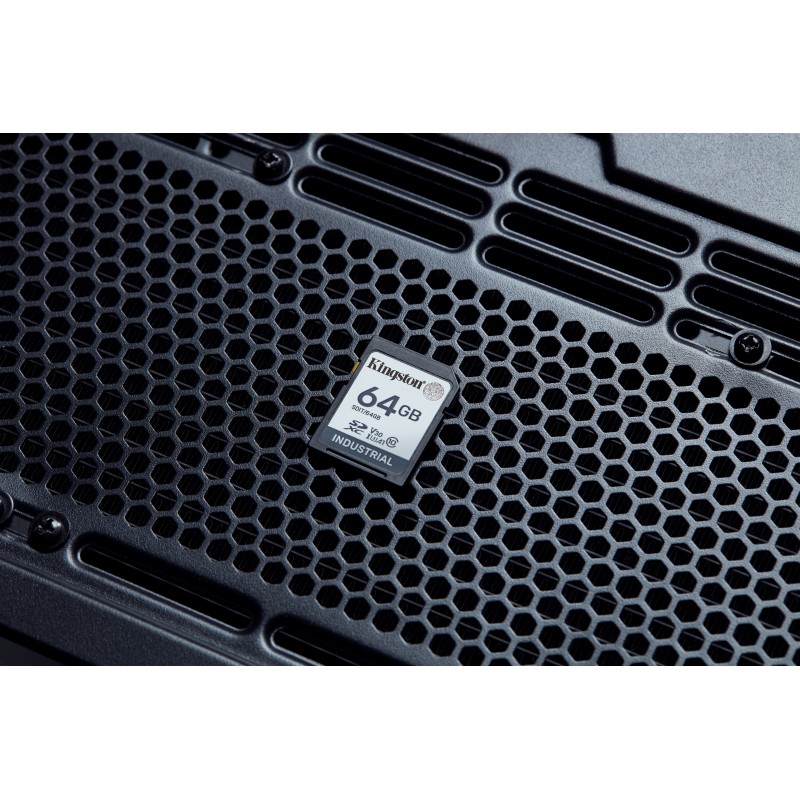 Kingston Technology 64G SDXC Industrial pSLC. Capacité: 64 Go, Type de Carte Flash: SDHC, Classe de mémoire Flash: Classe 10, Type de mémoire interne: UHS-I, Vitesse de lecture: 100 Mo/s, Vitesse d'écriture: 80 Mo/s, Classe de vitesse UHS: Class 3 (U3), Classe de vitesse vidéo: V30. Fonctions de protection: Résistant à une température, Imperméable, Résistant aux rayons X, Couleur du produit: Noir