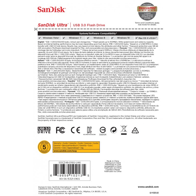 SanDisk Ultra. Capacité: 16 Go, Interface de l'appareil: USB Type-A, Version USB: 3.2 Gen 1 (3.1 Gen 1), Vitesse de lecture: 100 Mo/s. Format: Slide. Protection par mot de passe. Poids: 13,61 g. Couleur du produit: Noir