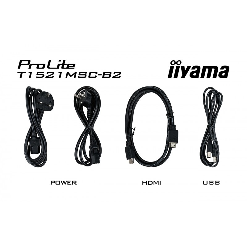 iiyama ProLite T1521MSC-B2. Taille de l'écran: 38,1 cm (15"), Résolution de l'écran: 1024 x 768 pixels, Type HD: XGA, Technologie d'affichage: LED, Surface d'affichage: Mat, Temps de réponse: 8 ms, Format d'image: 4:3, Angle de vision horizontal: 170°, Angle de vision vertical: 160°. Haut-parleurs intégrés. Montage VESA. Couleur du produit: Noir