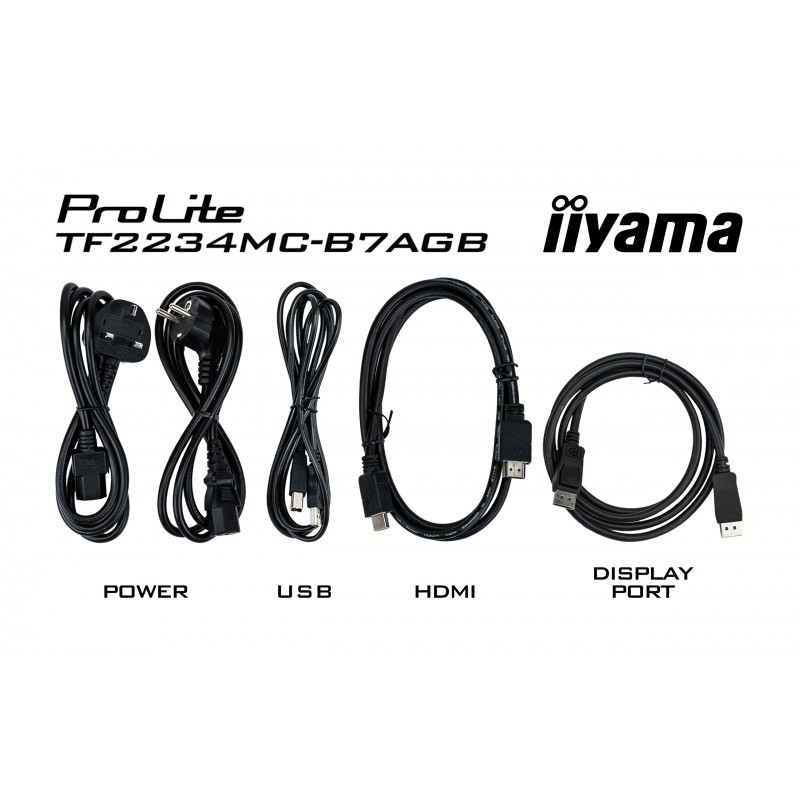 iiyama ProLite TF2234MC-B7AGB. Taille de l'écran: 54,6 cm (21.5"), Résolution de l'écran: 1920 x 1080 pixels, Type HD: Full HD, Technologie d'affichage: LED, Temps de réponse: 8 ms, Format d'image: 16:9, Angle de vision horizontal: 178°, Angle de vision vertical: 178°. Montage VESA. Couleur du produit: Noir