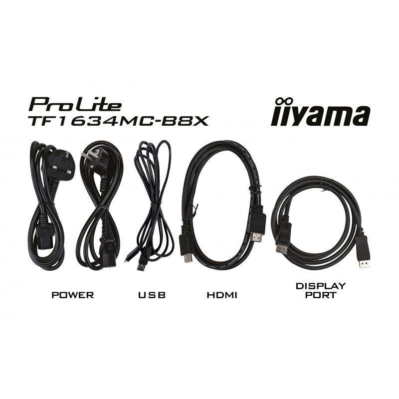 iiyama ProLite TF1634MC-B8X. Taille de l'écran: 39,6 cm (15.6"), Résolution de l'écran: 1920 x 1080 pixels, Type HD: Full HD, Technologie d'affichage: LED, Temps de réponse: 25 ms, Format d'image: 16:9, Angle de vision horizontal: 178°, Angle de vision vertical: 178°. Montage VESA. Couleur du produit: Noir