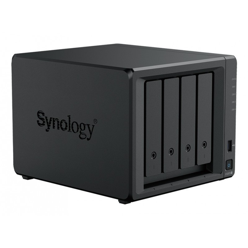 Synology DiskStation DS925+. Type: NAS, Classe de dispositif: Domicile et télétravail. Famille de processeur: Ryzen Embedded, Modèle de processeur: V1500B, Fréquence du processeur: 2,2 GHz. Mémoire interne: 4 Go, Type de mémoire interne: DDR4. Capacité totale du stockage installé: 0 To