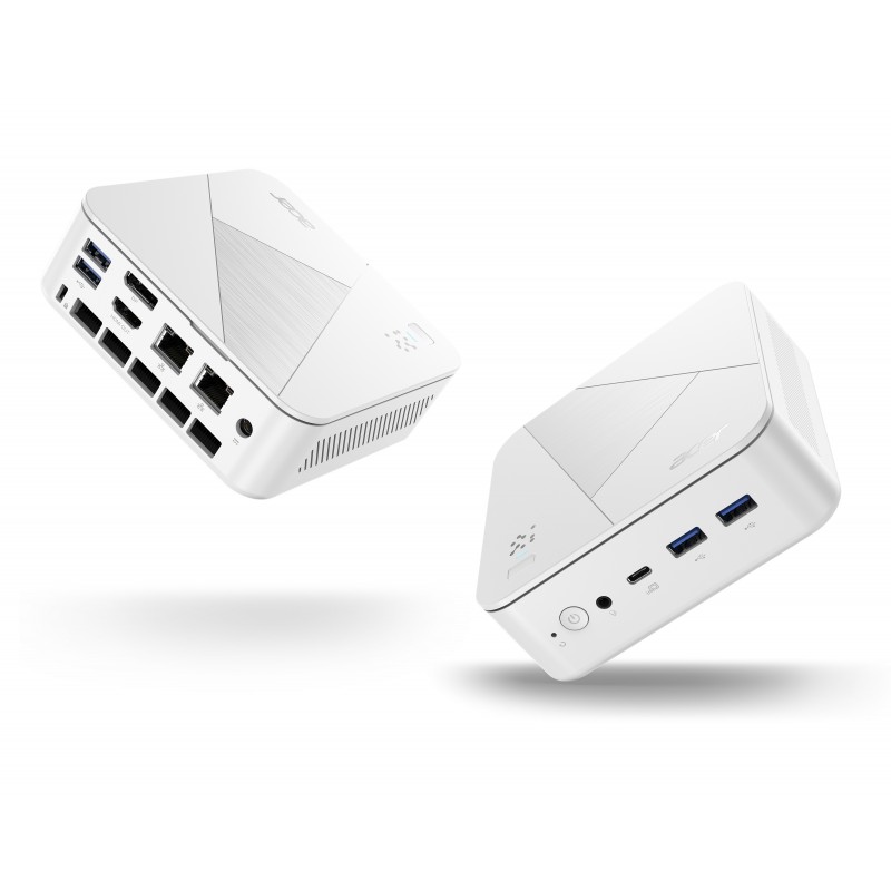 Acer Revo Box RB102-20CPW Mini. Fréquence du processeur: 2,1 GHz, Famille de processeur: Intel Core Ultra 5, Modèle de processeur: 226V. Mémoire interne: 16 Go, Type de mémoire interne: LPDDR5x-SDRAM, Fréquence de la mémoire: 8533 MHz. Capacité totale de stockage: 1 To, Supports de stockage: SSD. Modèle d'adaptateur graphique inclus: Intel Arc Graphics 130V. Système d'exploitation installé: Windows 11 Home, Architecture du système d'exploitation: 64-bit. Alimentation d'énergie: 90 W. Type de châssis: Mini PC. Type de produit: Mini PC. Couleur du produit: Blanc
