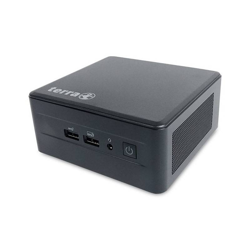 TERRA 1009965. Famille de processeur: Intel® Core™ i5, Modèle de processeur: i5-1340P. Mémoire interne: 16 Go, Type de mémoire interne: DDR4-SDRAM, Fréquence de la mémoire: 3200 MHz. Capacité totale de stockage: 500 Go, Supports de stockage: SSD. Modèle d'adaptateur graphique inclus: Intel Iris Xe Graphics. Système d'exploitation installé: Windows 11 Pro, Architecture du système d'exploitation: 64-bit. Alimentation d'énergie: 120 W. Type de châssis: Micro PC. Type de produit: Mini PC. Poids: 500 g. Couleur du produit: Noir