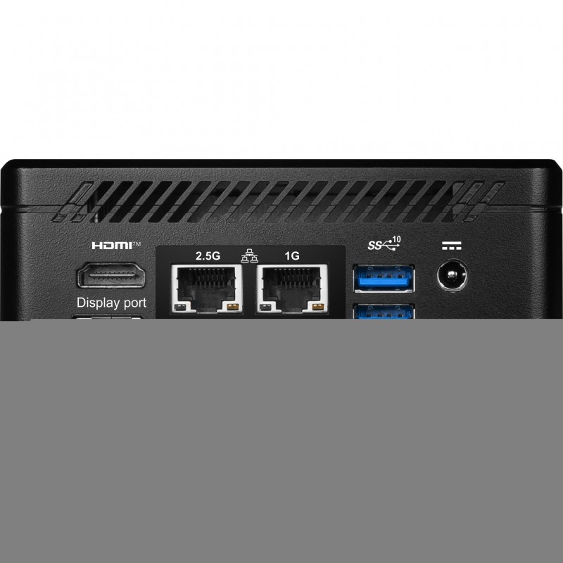 MSI Cubi 5 12M-002EU. Famille de processeur: Intel® Core™ i5, Modèle de processeur: i5-1235U. Mémoire interne: 8 Go, Type de mémoire interne: DDR4-SDRAM, Fréquence de la mémoire: 3200 MHz. Capacité totale de stockage: 512 Go, Supports de stockage: SSD. Modèle d'adaptateur graphique inclus: Intel Iris Xe Graphics. Wifi. Système d'exploitation installé: Windows 11 Pro. Alimentation d'énergie: 65 W. Type de châssis: Mini PC. Type de produit: Mini PC. Poids: 590 g. Couleur du produit: Noir