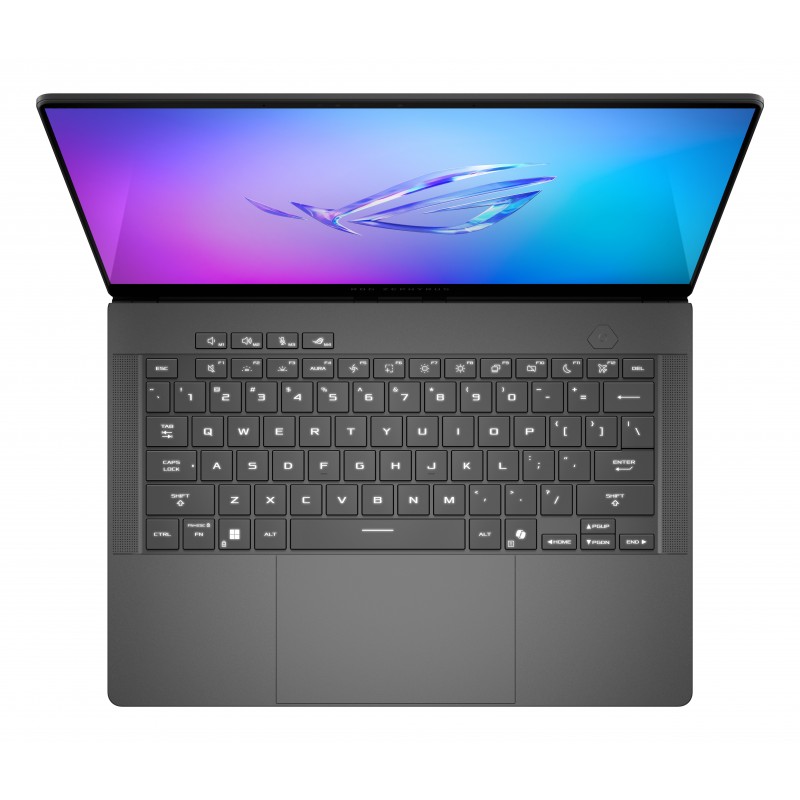 ASUS ROG Zephyrus G14 GA403WW-QS096W. Type de produit: Ordinateur portable, Format: Clapet. Famille de processeur: AMD Ryzen AI 9 HX, Modèle de processeur: 370, Fréquence du processeur: 2 GHz. Taille de l'écran: 35,6 cm (14"), Type HD: WQXGA+, Résolution de l'écran: 2880 x 1800 pixels. Mémoire interne: 64 Go, Type de mémoire interne: LPDDR5x-SDRAM. Capacité totale de stockage: 2 To, Supports de stockage: SSD. Modèle d'adaptateur graphique inclus: AMD Radeon 890M. Système d'exploitation installé: Windows 11 Home. Couleur du produit: Noir, Gris
