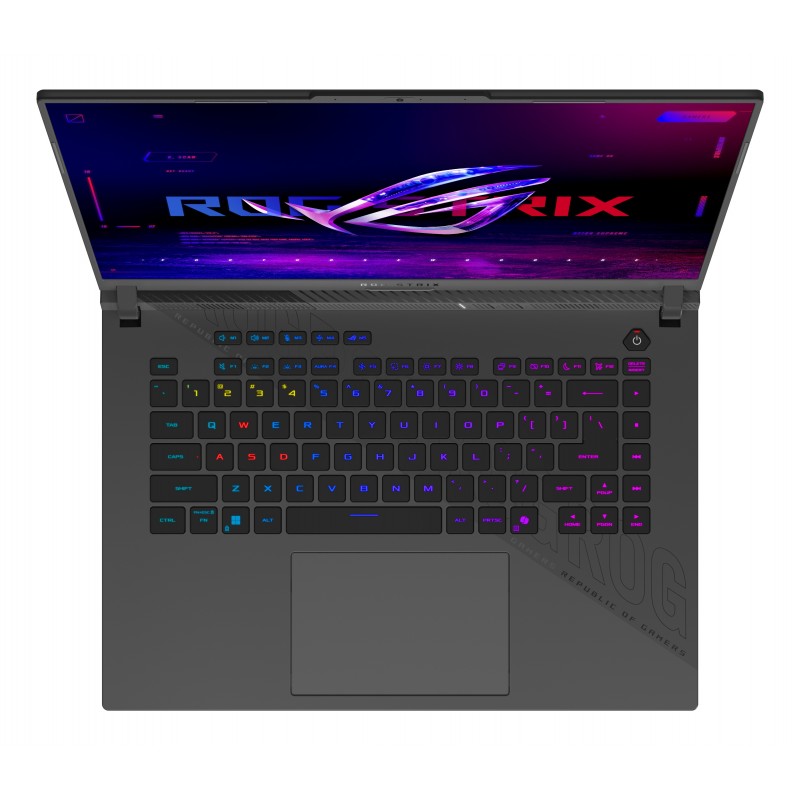 ASUS ROG Strix G16 G614PP-RV030W. Type de produit: Ordinateur portable, Format: Clapet. Famille de processeur: AMD Ryzen™ 9, Modèle de processeur: 8940HX, Fréquence du processeur: 2,4 GHz. Taille de l'écran: 40,6 cm (16"), Type HD: WUXGA, Résolution de l'écran: 1920 x 1200 pixels. Mémoire interne: 32 Go, Type de mémoire interne: DDR5-SDRAM. Capacité totale de stockage: 1 To, Supports de stockage: SSD. Modèle d'adaptateur graphique inclus: AMD Radeon 610M. Système d'exploitation installé: Windows 11 Home. Couleur du produit: Gris