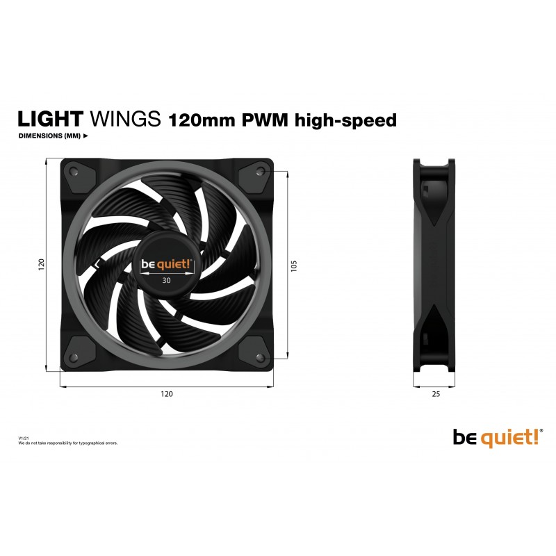 • Be Quiet! Light Wings 120 mm PWM | Ventilateur PC ARGB high-speed, Pack de 3, Ventilateur, 12 cm, 2500 trmin, 88,86 m³h, Noir