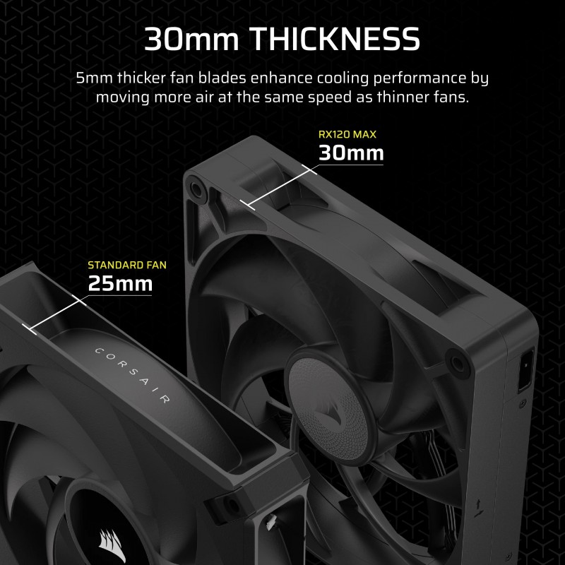 • Corsair iCUE LINK RX120 MAX, Ventilateur, 12 cm, 400 trmin, 2000 trmin, Noir