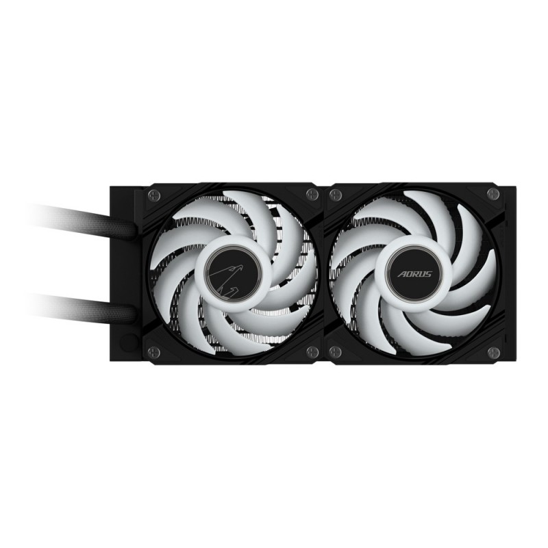 • Gigabyte Refroidisseur de CPU liquide AIO AORUS WATERFORCE II 240 - 2 ventilateurs ARGB 120 mm, mécanisme d'interverrouillage coulissant, DAISY-CHAIN, compatible Intel LGA 1700 et AMD AM5, Refroidisseur de liquide tout-en-un, 12 cm, 64,25 cfm, Noir