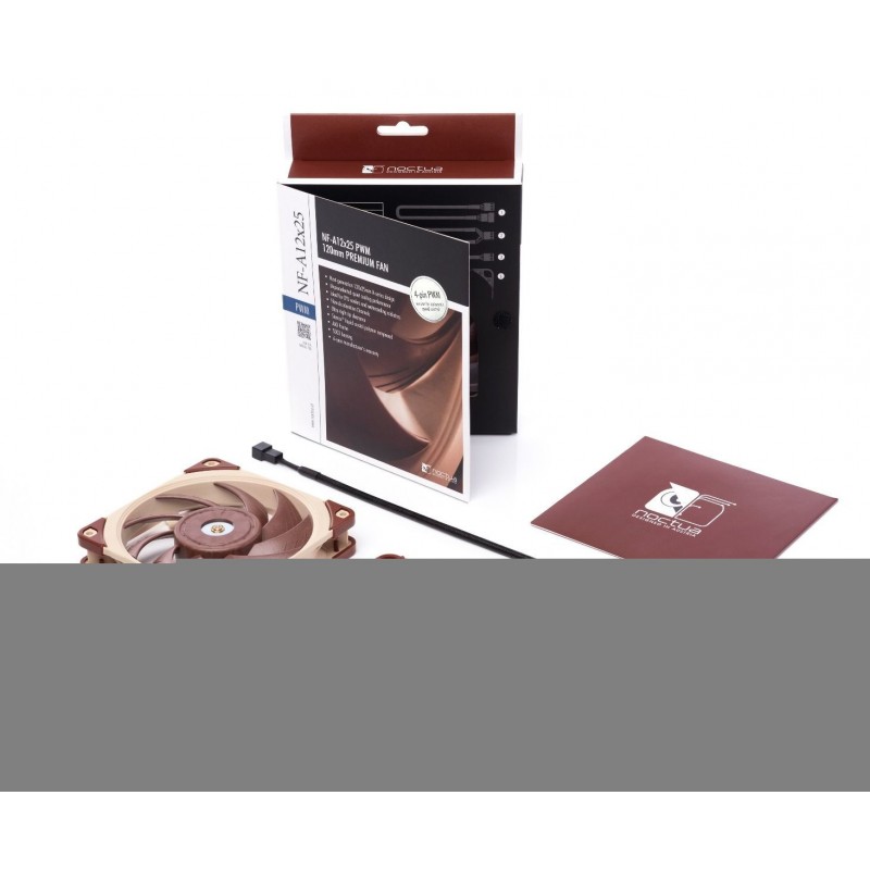 Noctua NF A12x25 PWM. Type: Ventilateur, Diamètre du ventilateur: 12 cm, Vitesse de rotation (min): 450 tr/min, Vitesse de rotation (max): 2000 tr/min, Flux d'air: 102,1 m³/h, Pression d'air maximale: 2,34 mmH2O, Type de roulement: Self-Stabilising Oil-pressure Bearing (SSO). Tension: 12 V. Largeur: 120 mm, Profondeur: 25 mm, Hauteur: 120 mm. Couleur du produit: Beige, Rouge