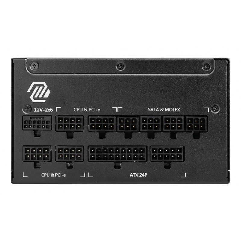 • MSI MAG A1250GL PCIE5, 1250 W, 100 - 240 V, 5060 Hz, Actif, 90%, Sur-courant, Sur-alimentation, Over total voltage, Surtension, Court-circuit, Sous-tension