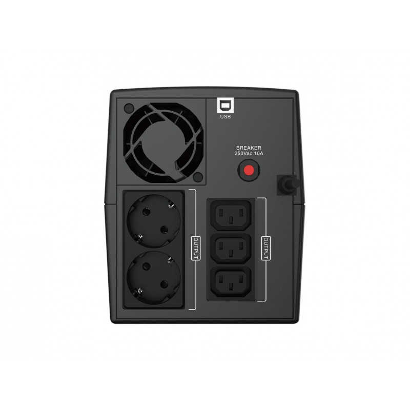 Conceptronic ZEUS04EM. Topologie UPS: Interactivité de ligne, capacité de la puissance de sortie: 2,2 kVA, Puissance de sortie: 1320 W. Types de sortie AC: IEC Jumpers, Type F, Nombre de prises en sortie: 5 sortie(s) CA. Tension des piles: 24 V, Durée de rechargement de la batterie (90 %): 8 h. Format: Compact, Couleur du produit: Noir, Type de refroidissement: Actif. Largeur: 148 mm, Profondeur: 298 mm, Hauteur: 178 mm