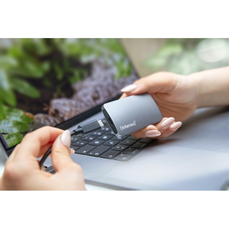 Stockez tout sur un SSD de la taille d'une carte de crédit, d'une capacité de 1 à 4 To, disponible en bleu ou en gris.