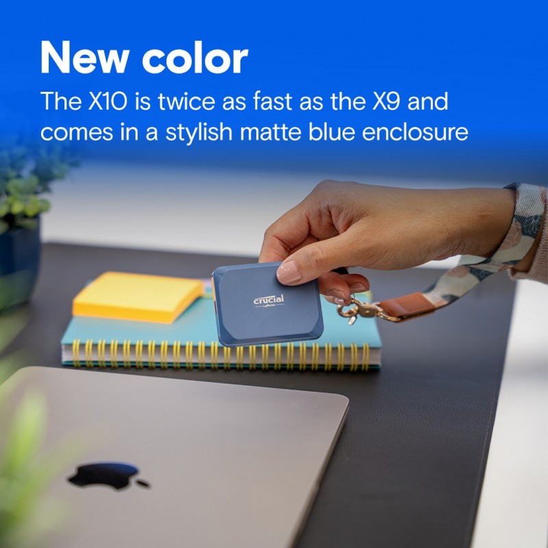 • Crucial X10, 4 To, USB Type-C, USB 3.2 Gen 2x2, 2100 Mos, 20 Gbits, Bleu