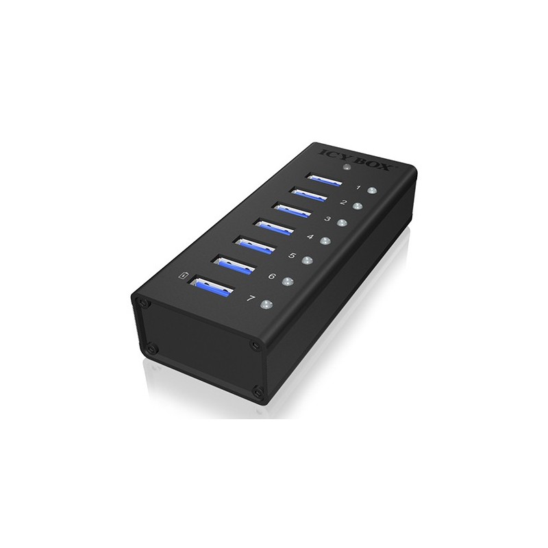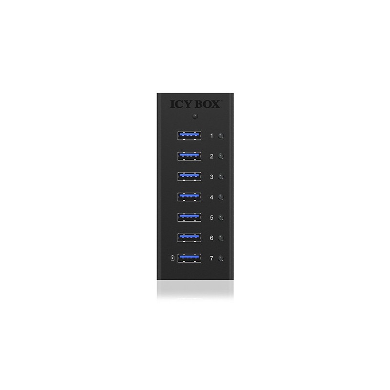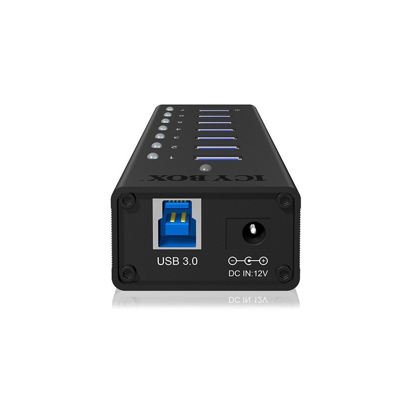 ICY BOX IB-AC618. Interface de l'hôte: USB 3.2 Gen 1 (3.1 Gen 1) Type-B, Interfaces Hub: USB 3.2 Gen 1 (3.1 Gen 1) Type-A. Taux de transfert de données: 5000 Mbit/s, Couleur du produit: Noir, Matériau du boîtier/corps: Aluminium. Type d'alimentation d'énergie: CC, Tension d'entrée: 12 V, Courant d'entrée: 3 A. Largeur: 46 mm, Profondeur: 113 mm, Hauteur: 26 mm. Largeur du colis: 80 mm, Profondeur du colis: 100 mm, Hauteur du colis: 200 mm